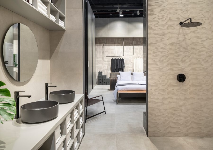 The new marble collection takes the visitor into the brand's new universe, in patterned and linked environments, where the product is the backbone of the entire venue, integrated into the architecture of the space. The In & Out finishing solutions, the modular formats, the Thinbig ceramic pieces and the 20 mm thickened floors shared the limelight at CEVISAMA together with the Ábaco, Limestone, Bosco, Terre and Basel collections, in contemporary proposals and impeccable aesthetics.