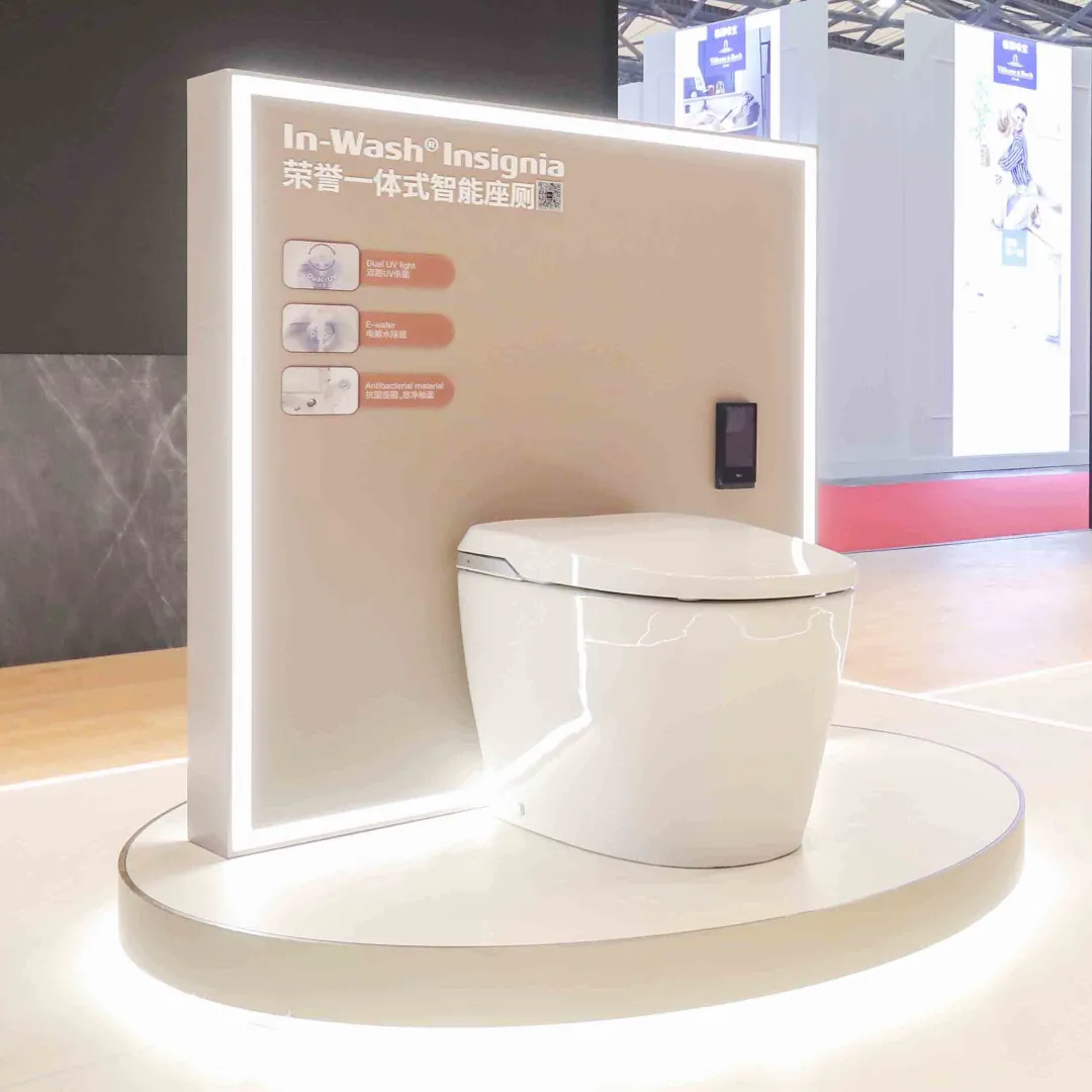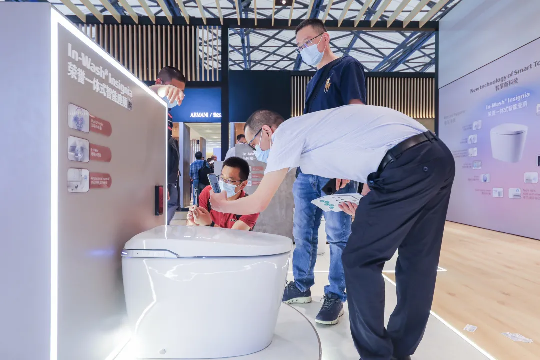 而另外一款在展会上首次亮相的智能座厕, In-Wash® Insignia荣誉一体式智能座厕在冲水和杀菌功能方面都进行了升级。内置In-Tank® PRO大能量水箱和全新的Vortex®无圈孔冲刷技术,让座厕清洁变得更加彻底。另外,双路UV杀菌、电解水除菌和集智抗菌叠加的三重杀菌功能让各种细菌无处可逃,升级了洁净和卫生的环境。它的节水更是一步到位,3.8L大冲超低冲水量,节水的同时冲洗掉污垢,对于每个消费者来说In-Wash® Insignia荣誉一体式智能座厕是不二之选。