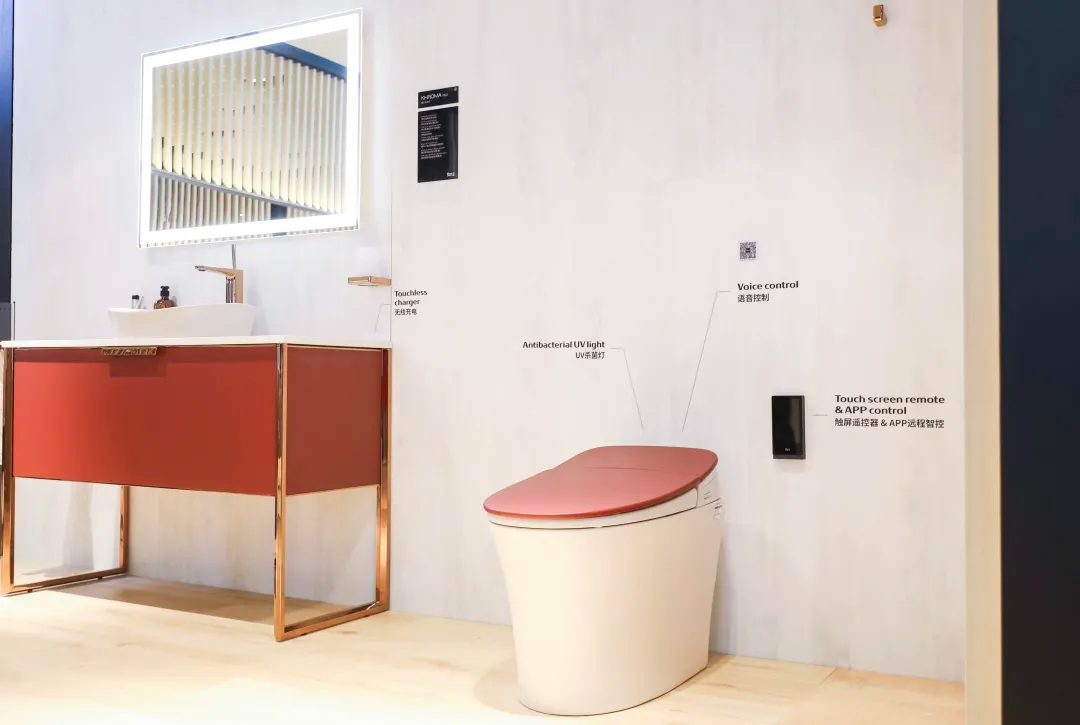 作为此次在KBC首发的系列,全新智能卫浴New Khroma新酷玛系列在色彩和功能上的进一步的升级,4种不同风格的色彩解决方案让消费者在浴室中自由表达自己的生活方式,展现独一无二的个性。无论你是活力四射,还是深沉内敛,亦或者是你想追求清新和现代风格,还是想要明亮清澈的空间,此次全新的酷玛系列带来的赫彩红、睿智黑、风雅蓝和初心白4种色彩方案都能够让消费者拥有缤纷多彩卫浴空间,出色,释放生活本色!
