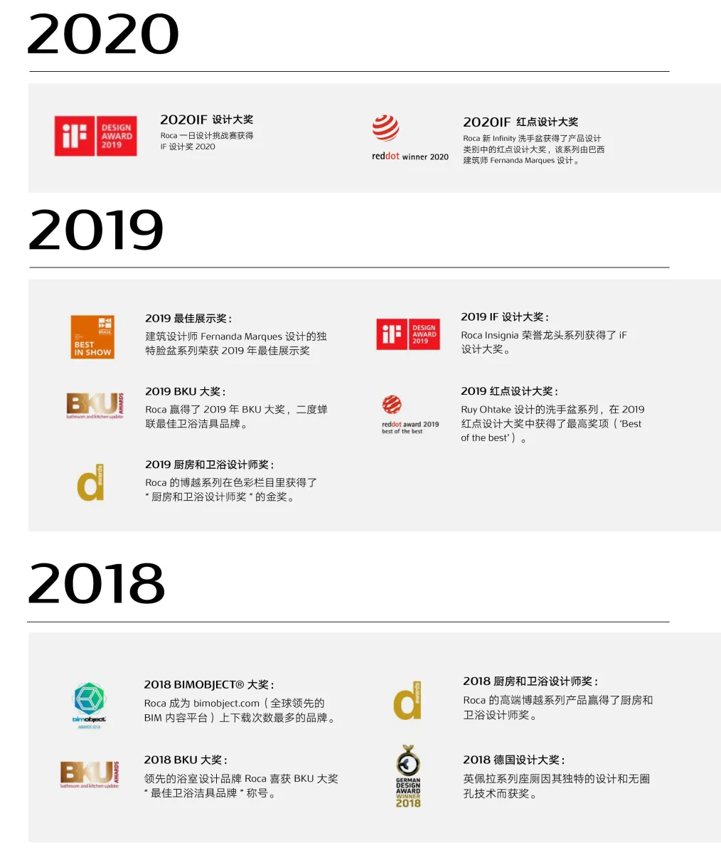 百年欧洲卫浴品牌 Roca, 于 1917 年创立于激情与灵感迸发的西班牙巴塞罗那,拥有享誉全球的设计实力与资源,以专业品质,缔造属于每个人的美好生活。凭借有生活感、令人心动的前沿设计,Roca斩获无数国际大奖,并始终没有停下进取的脚步,持续引领卫浴行业方向。