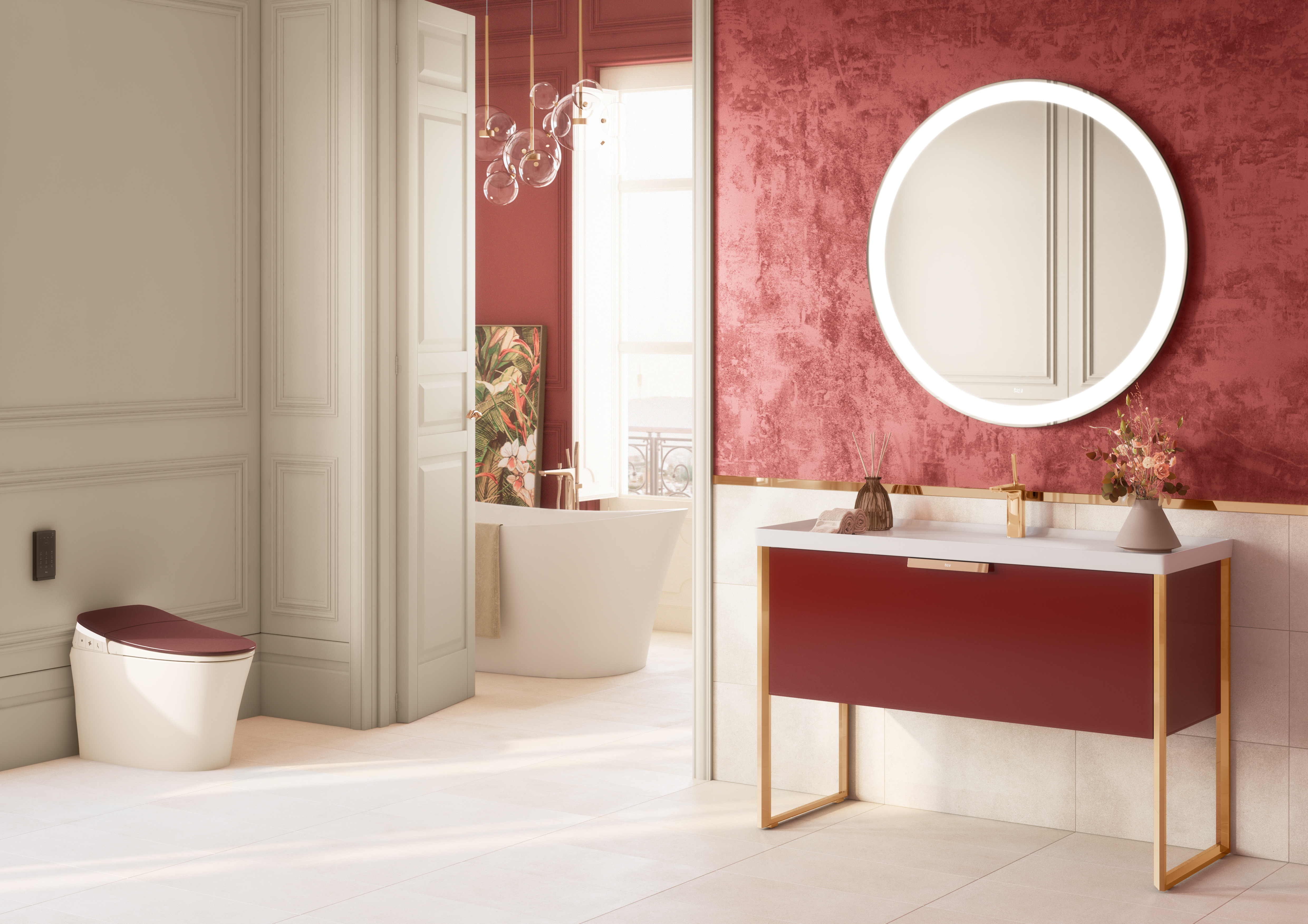 全新酷玛系列除了视觉出色,在功能表现上更为出众。一体式智能座厕配备红色皮革盖板,兼具语音控制功能,家具饰面新增无线充电功能。酷玛系列将个性化与科技相结合,为消费者带来全新的“智”浴体验。