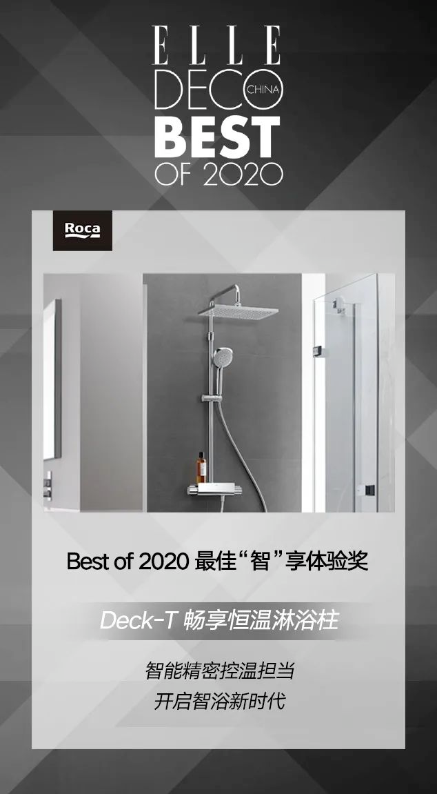 Roca Deck-T 畅享恒温淋浴柱 凭借超越行业标准的硬核科技实力,荣获权威奖项 Best of 2020 最佳“智”享体验奖。