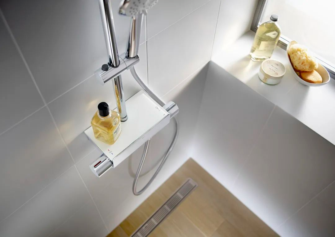 Evershine 恒亮技术,高质量的抛光表面持久光亮,防止水垢堆积,耐划伤易清洁。淋浴龙头配备的置物台,则解决了淋浴时的收纳问题。淋浴柱高度可调节,适应各种空间大小,还可配备超大顶喷和带升降支架的手持花洒,多功能集合,畅享淋浴时刻。