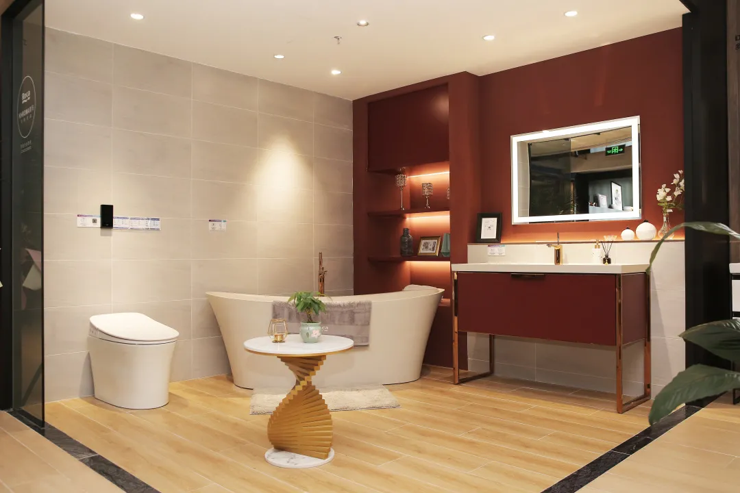 300多平米的门店为消费者提供全面的卫浴空间解决方案,囊阔了经典产品智能座厕系列、淋浴、家具定制等多样化产品。无论消费者有什么样的需求都可以在该门店挑选到心仪的产品。追求个性和独特设计的消费者可以选择彩陶台盆搭配Everlux恒璨镀层龙头,彰显个性。或者是定制化家具,从配色、到材质、再到尺寸的定制,打造专属卫浴方案。店里的Roca英佩拉一体式智能挂墙座厕能够最大化利用空间,加上简洁的设计和全面的智能功能,是细节控们的明智之选。恒温淋浴柱自带贴心的安全设置,将水温控制在38度以内,带来既安心又安全的沐浴享受。