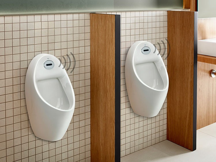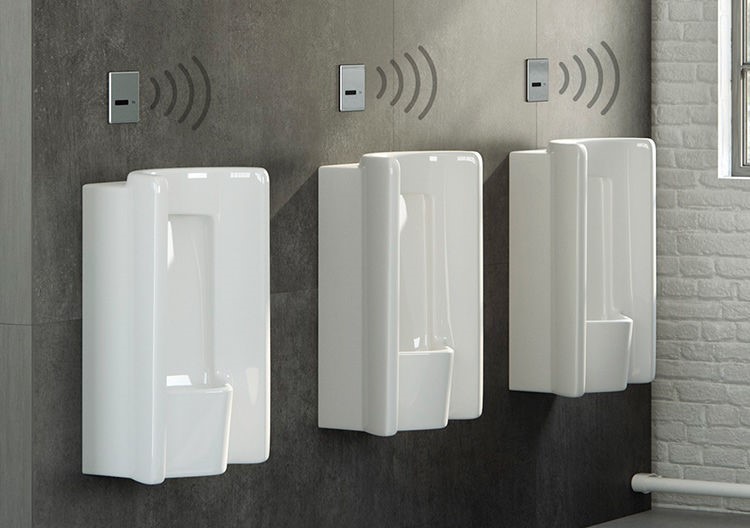 Euret尤瑞电子感应小便器能够在用户使用后自动激活冲水功能,产品内部配备传感器,避免用户直接用手接触卫浴产品,最大限度地防止病毒和细菌传播。